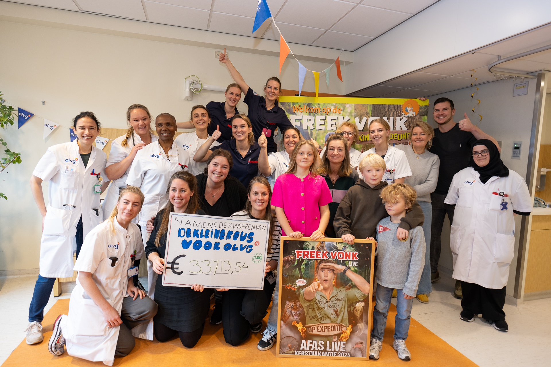 Basisschool De Kleine Reus wilde graag meehelpen aan het bijzondere Freek Vonk project van Stichting Vrienden van OLVG. Daarom organiseerden ze vlak voor de start van de herfstvakantie een sponsorloop. Het doel: zoveel mogelijk geld ophalen om de kinderdagbehandeling om te kunnen toveren tot Freek Vonk-jungleparadijs. En dat is meer dan gelukt met meer dan 33.000 euro!